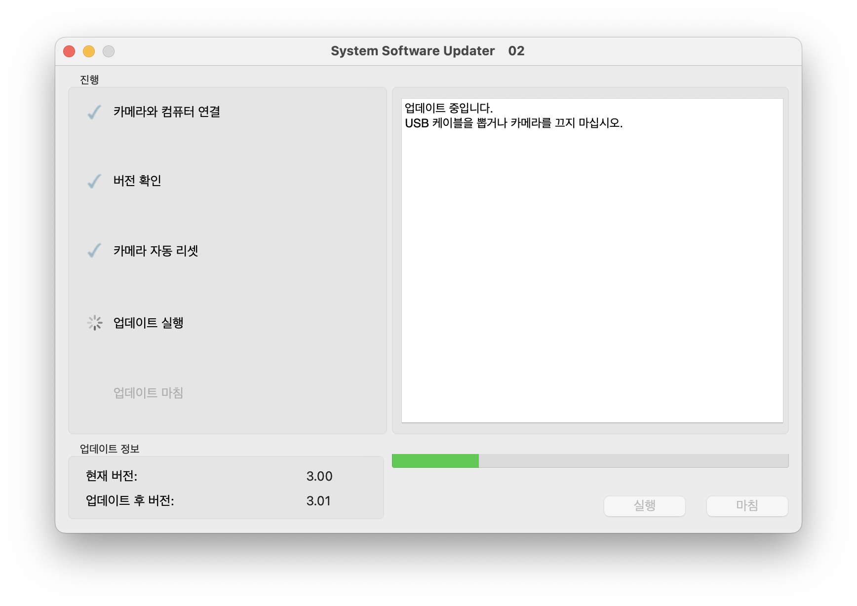 2024년 5월 15일에 이르러 업데이트 버전 3.01이 이루어졌습니다. 버전 2.15 이상인 경우 업데이트 프로그램 02_Update_ILCE7SM3V301.app을 사용하여 버전 3.01으로 업데이트합니다.