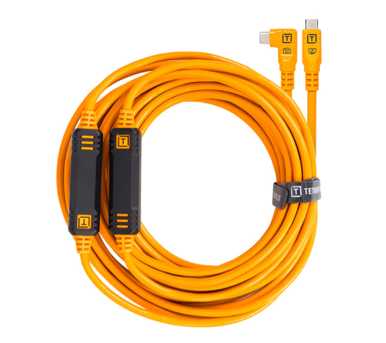 연결전송에는 케이블이 필요합니다. 보통 USB 2.0 케이블은 리피터없이 최대길이 5 m가 가능하고, USB 3.0은 3 m까지 가능합니다. 그 이상이 된다면 케이블 감쇠로 전송 속도가 떨어지고 전송오류가 발생할 수 있기 때문입니다. 근래 TetherPro USB-C to USB-C 9.4 m (31피트) 케이블이 등장해 반갑습니다. 오직 연결촬영시 고속데이터 이동을 위해 단방향으로 설계한 케이블입니다. 오디오/비디오 연결선과 전력선으로서의 기능은 제거되었습니다. 최대 240 W의 Powder Deliver가 테더링 연결을 포함한 특정 유형의 연결에서 불안정성을 유발하여 카메라 제조업체는 테더링 시 전원 공급을 끄는 것을 권장하기 때문입니다. 이를 위해 오직 1.5 A 전원 공급을 남겨두고 IC 칩 세트 두 개가 차폐된 데이터를 증폭하도록 설계하였습니다. 이렇게 마련된 9.4 m는 TetherBoost Pro Core Controller Extension Cable과 결합하여 최대 19.2 m로 연장가능합니다. 연결은 USB 3.2 Gen 1으로 최대 5Gbps 데이터 전송을 보장하며, 이는 Alpha 9 III(USB 3.2 Gen 2), Alpha 7S III(USB 3.2 Gem 1)과 2019 16" Macbook Pro(USB 3.1 Gen 2)에 적절합니다.