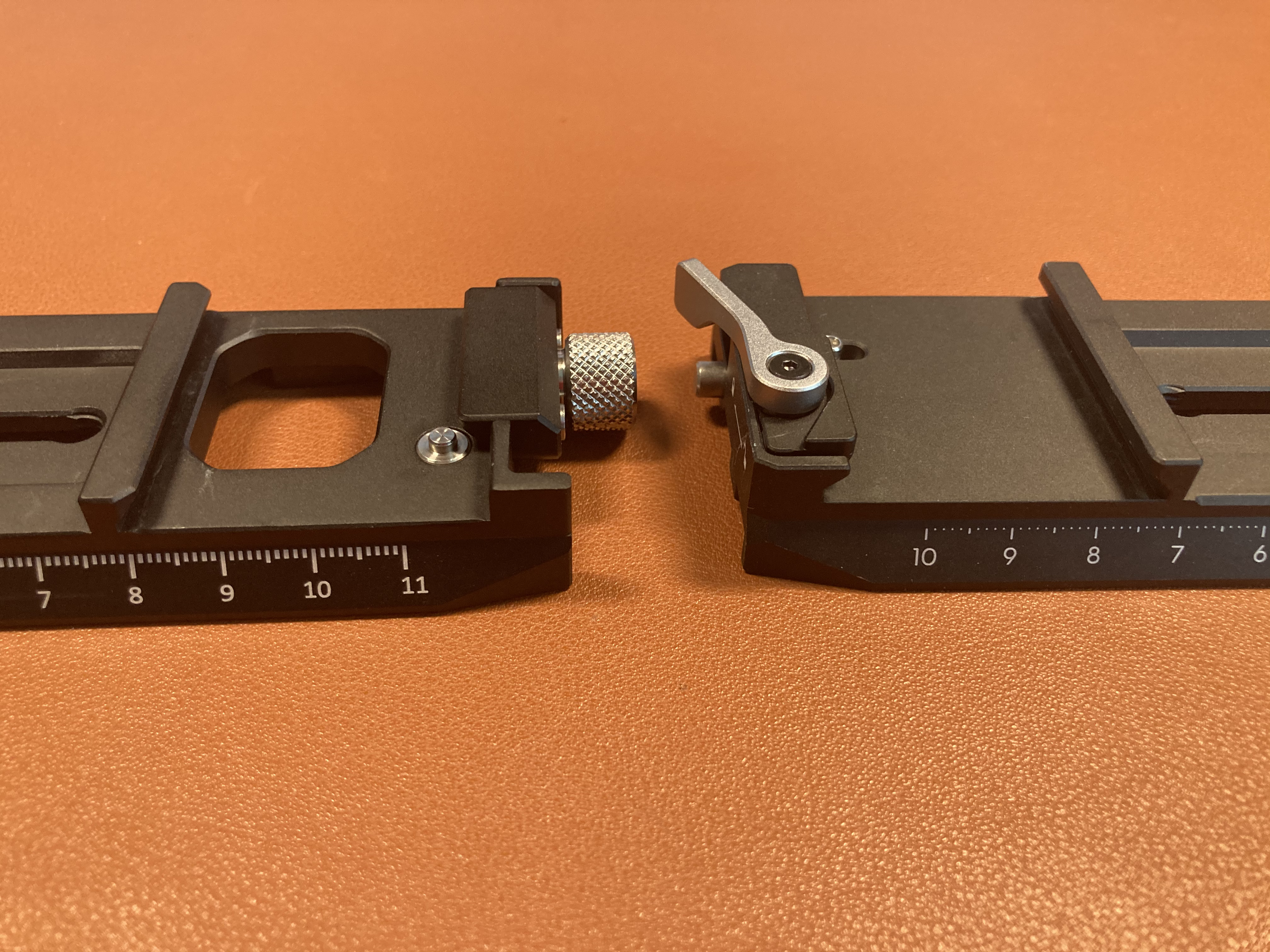 우선 왼쪽의 F38 Camera Quick Release Plate는 한쪽으로는 PeakDesign 제품으로 장착이 가능하고 다른 방향으로는 F38 플레이트로서 오른쪽의 Ulanzi 베이스 플레이트에 장착가능합니다.